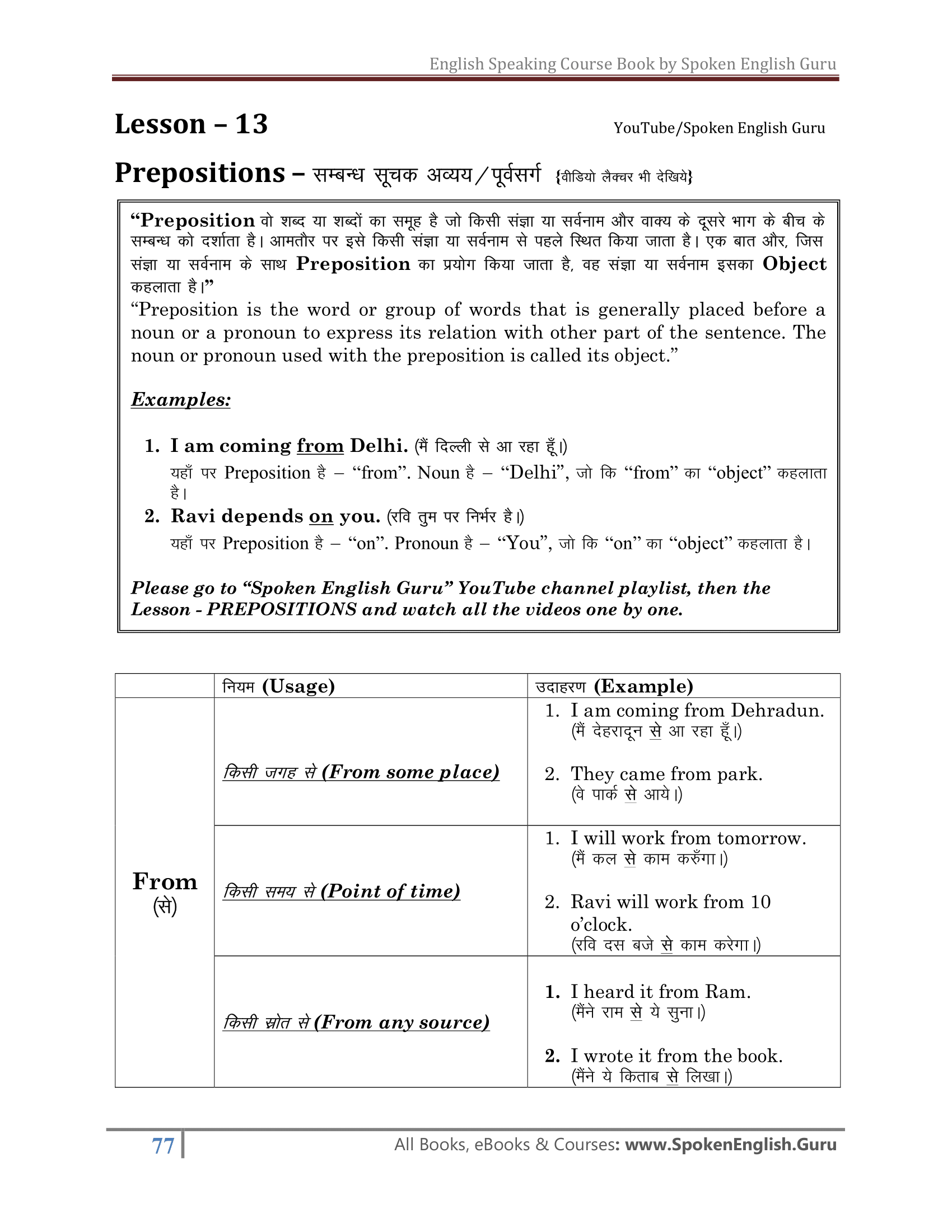 This English Speaking Course Book is one of the best selling books of "Spoken English Guru Complete English Speaking Course Kit". This book covers complete English Grammar as well as Spoken English Lessons. The whole material is prepared in conversational Hindi as well as conversational English language so that all Hindi medium students can understand the concepts easily. This book has a mini dictionary on the last few pages.